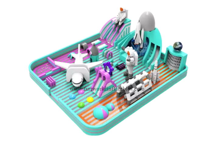 Built with tough 0.55mm PVC, this park resists wear from endless jumps and energetic play. The delicate sewing craftsmanship guarantees durability, ensuring every part remains sturdy. Perfect for parties, carnivals, or play centers, it turns any venue into a dynamic fun zone. Let children leap into a universe of joy, combining movement and imagination. Trust Funworld Inflatables for unmatched quality and innovation. Reach out now to bring this cosmic inflatable park to life at your next event!